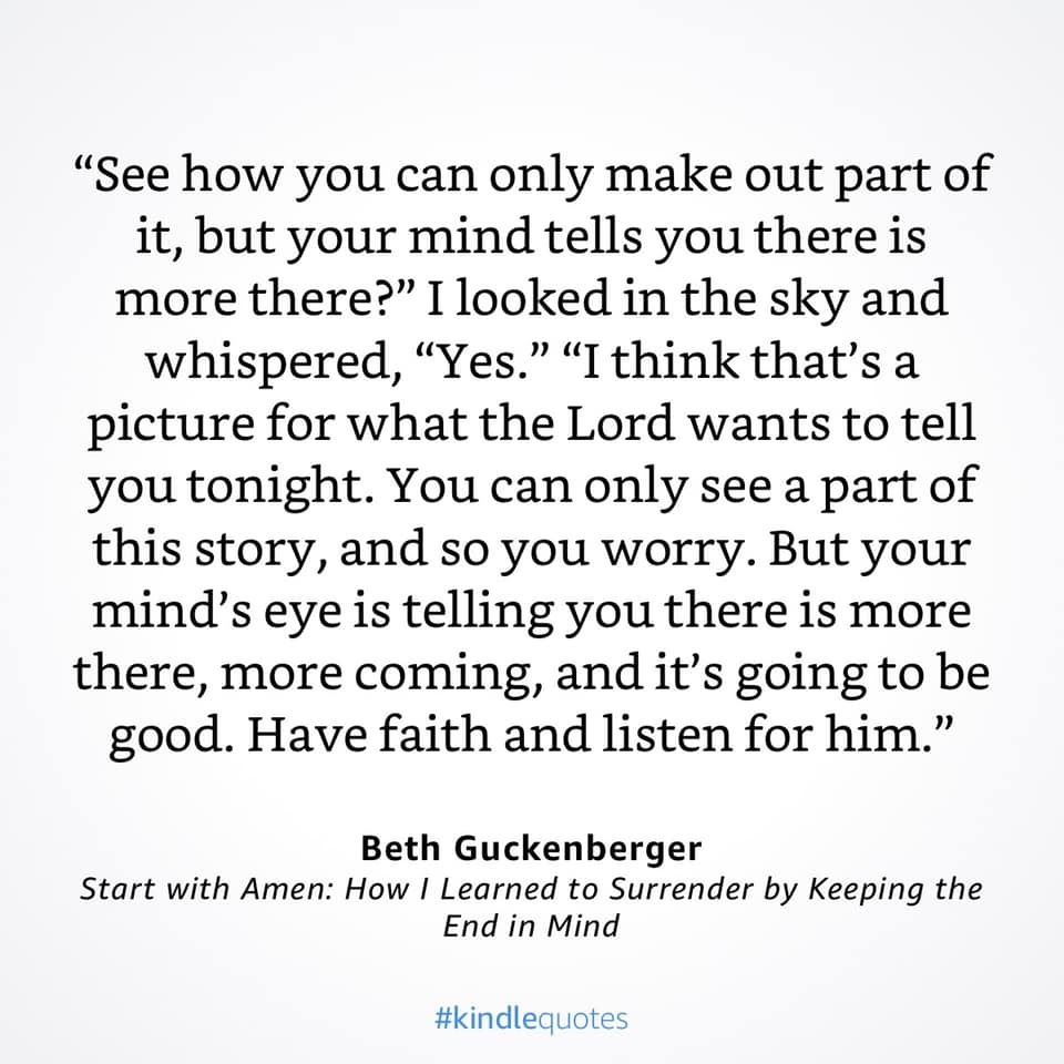If you haven’t read, “Start with Amen” by Beth Guckenberger, now is the time. Her story about looking up into the night sky to see a sliver of the moon is worth remembering: